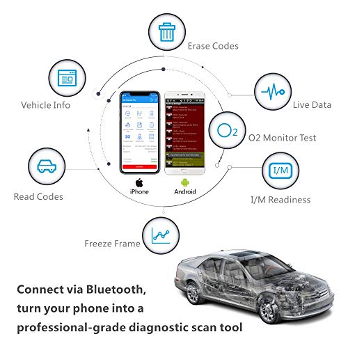 Work with Android cellphone and tablet. Panlong Bluetooth OBD2 OBDII Car Diagnostic Scanner Check Engine Light for Android - Compatible with Torque Pro. This App turns your mobile device into a professional diagnostic toolsystem that would normally cost thousand of dollars and difficult to use.